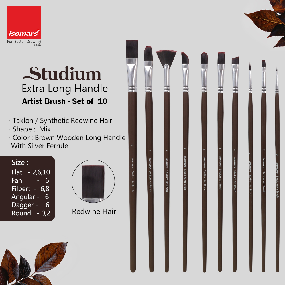 Studium - Extra Long Handle Artist Brush - Set of 10