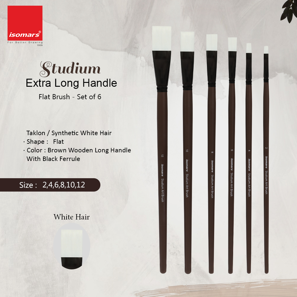Studium - Extra Long Handle Flat Brush - Set of 6