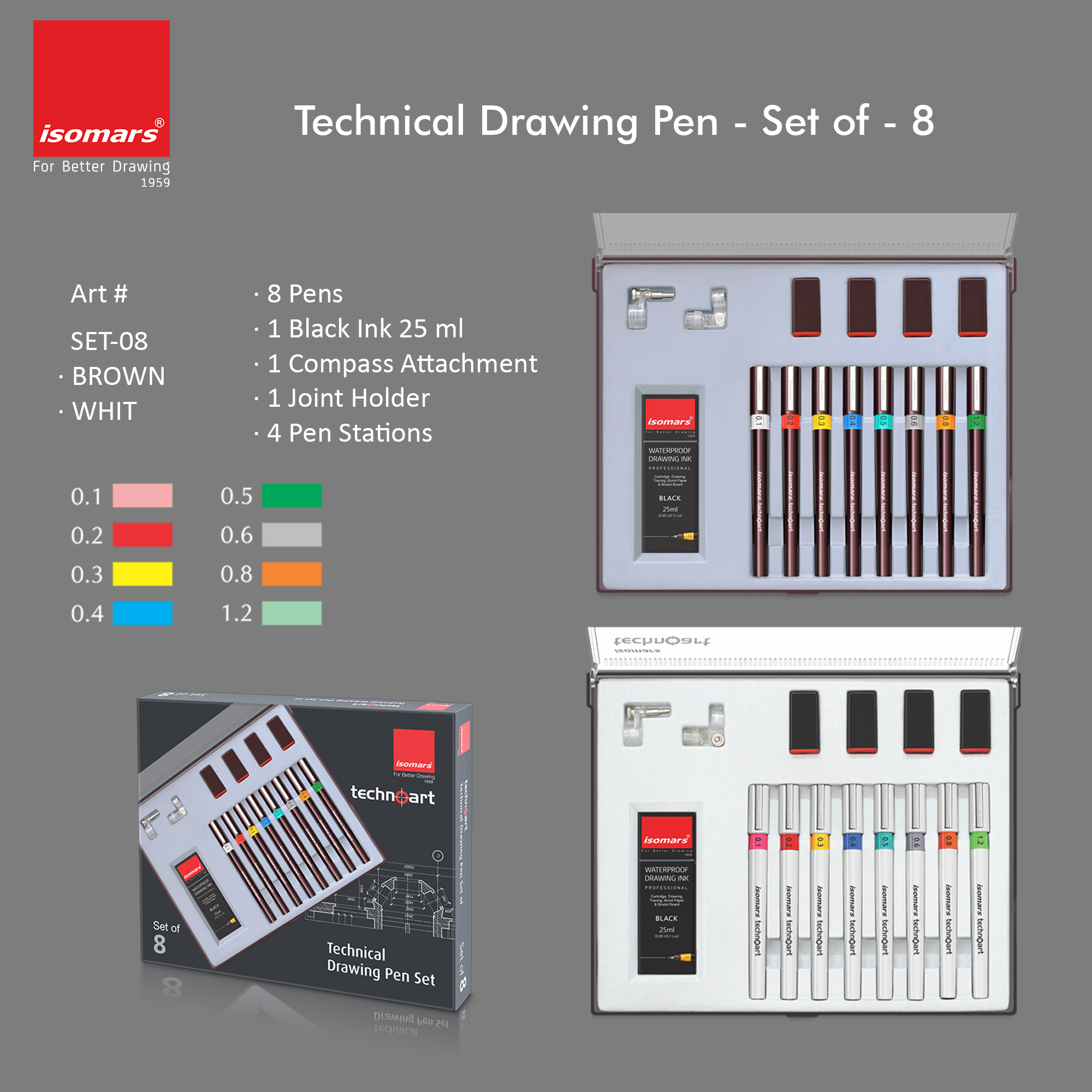 Isomars Technical Drawing Pen Set of 8 - Brown